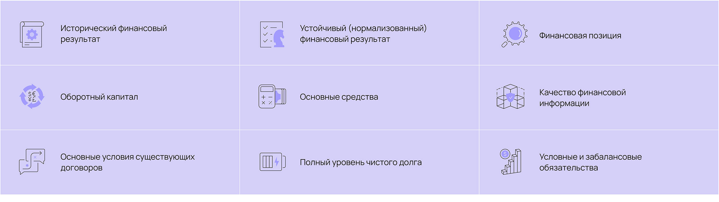 Разработанная в ДКП методология расчетов на закрытии будет учитывать результаты финансового анализа и позволит Сторонам четко понимать, как будут сформированы и в дальнейшем рассчитаны элементы цены сделки (чистый долг, оборотный капитал, EBITDA, др.).